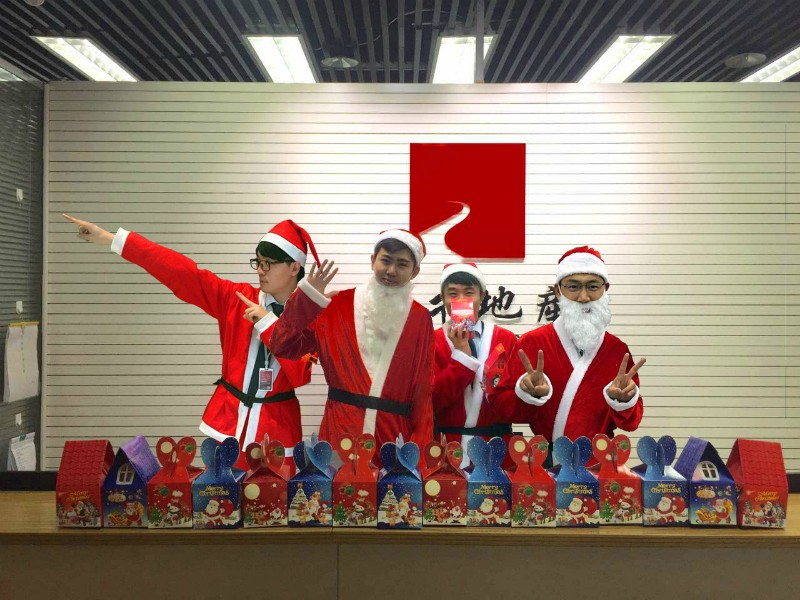 1.多重影分身術(shù)。12月22日,遠(yuǎn)行地產(chǎn)總部,只聽到“砰”、“砰”、“砰”、“砰”四聲響。公司前臺憑空出現(xiàn)四位形態(tài)不一、風(fēng)格迥異的圣誕老人。他們?nèi)徊活櫩偛科渌锇轶@奇的目光,直接開始了分組討論。經(jīng)過周密的計(jì)劃,他們在總部其他小伙伴的歡送下,帶上公司為遠(yuǎn)行家人們精心準(zhǔn)備的圣誕禮物,向著4個(gè)方向,開始了秘密行動。