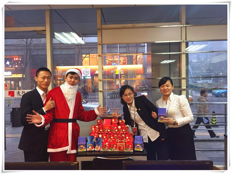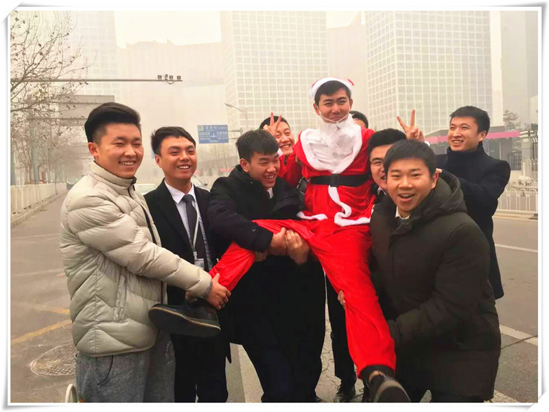2.瞬間移動。22號下午的北京天空,霧霾還沒有散去,吹到臉上的風(fēng)亦有些瑟瑟的寒冷。在北京的各大商務(wù)辦公區(qū),每一座高樓里的人們都在忙忙碌碌地為著夢想而努力。這個(gè)時(shí)候,四位圣誕老人已經(jīng)開始了一段“送驚喜”的旅程,為了將遠(yuǎn)行的愛送到每一位遠(yuǎn)行人的心里,圣誕老人們正悄悄奔向遠(yuǎn)行地產(chǎn)各個(gè)門店。無論距離有多遠(yuǎn),他們只希望自己出現(xiàn)在門店門口的那一刻,所有的小伙伴可以露出笑容,迎接一共600多件精心包裝的圣誕平安果。
